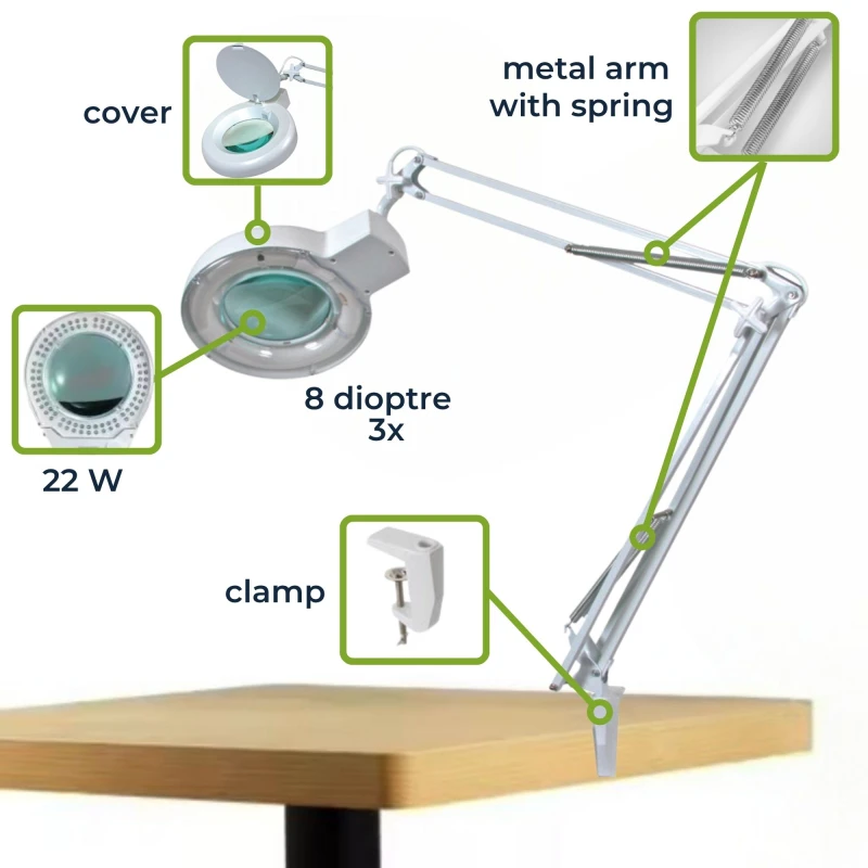 This high-quality magnifying lamp is engineered for dedicated hobbyists and professionals who demand precision and clarity in their daily tasks. The powerful 3x magnification (8 dioptres) brings even the smallest details into sharp focus, making it an essential tool for reading, diamond painting, or intricate electronics work.
