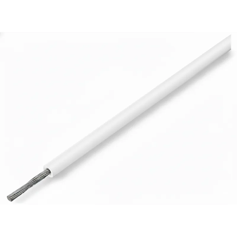 This HELUKABEL SiF single-core silicone wire (SKU: SIF0.25-WH) is designed for reliable performance in extreme high-temperature environments. It features a 0.25 mm² fine-stranded tinned copper conductor and halogen-free silicone insulation.