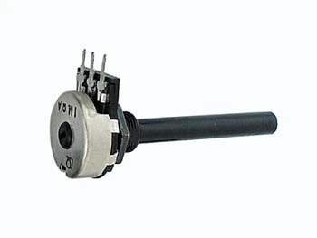 20mm rotary carbon track potentiometers for PCB mounting. Metal/plastic housing and plastic axe (Ø 6mm). Optional single-pole switch (1A-24Vdc / 0.3A-250Vac).