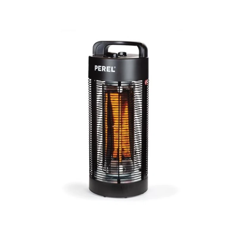 On or under a table in a shed or party tent, this mobile patio heater from Perel transforms your cold patio into a pleasant outdoor spot with just the push of a button! The heater can also be used indoors and is even ideal for heating a workshop or garage. The stylish carbon heater with 2 adjustable heating levels (600 W - 1200 W) moves completely silently at an angle of 120° - 360°. This patio heater has protection class IP34, protecting it from splashing water and the ingress of foreign objects. In addition, the patio heater is equipped with a tilt lock that automatically shuts the unit off as soon as it falls over or is knocked over. Thanks to the handle, you can take the heater anywhere. .+ Enjoy longer: Thanks to this patio heater, you stay nice and warm and can enjoy your garden or patio for longer. The heater can also be used indoors and is even ideal for heating a workshop or garage.