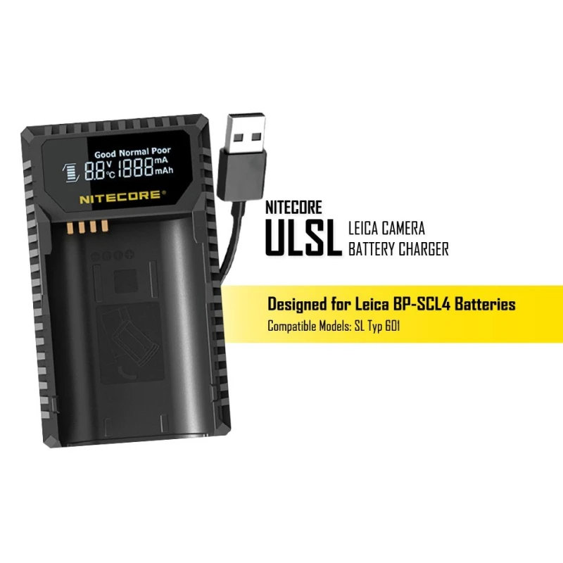 Nitecore ULSL USB Travel Charger is designed to recharge Leica BP-SCL4 batteries.