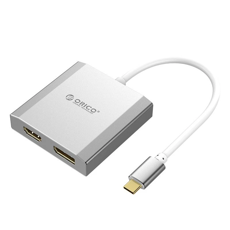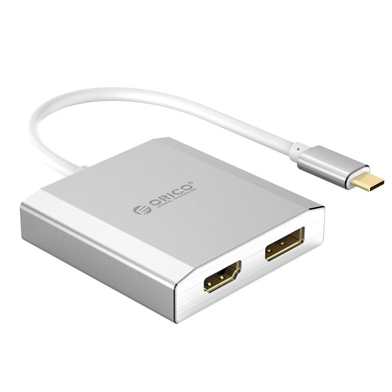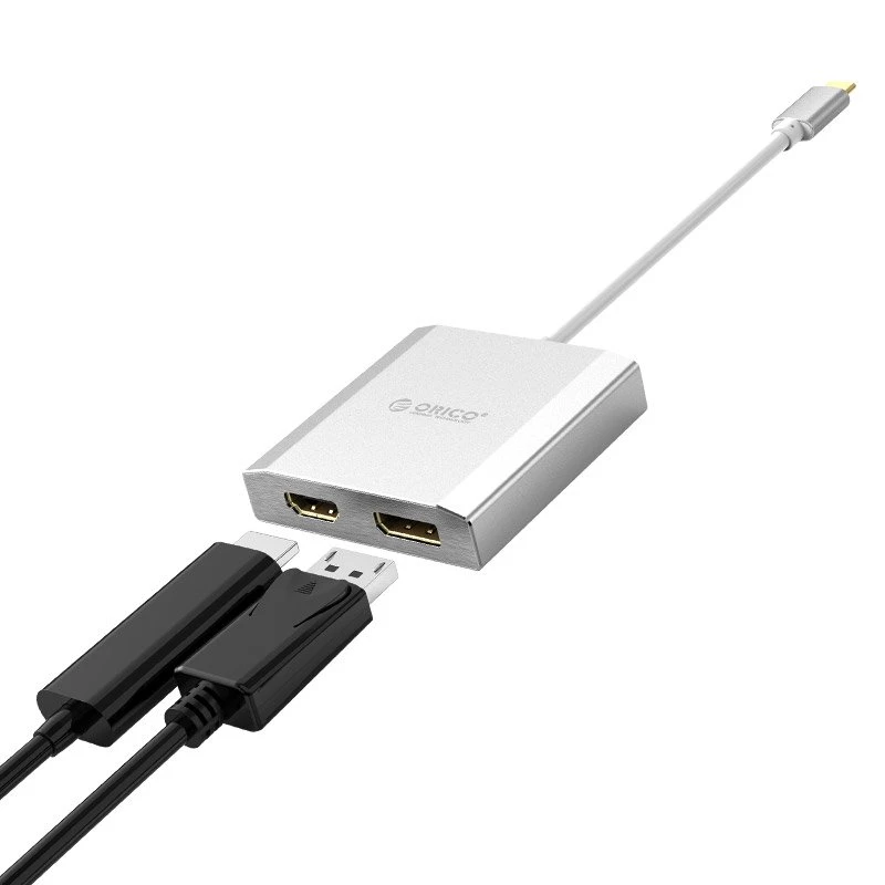Orico Type-C -> Displayport + HDMI adapter. Cable length 15cm. 1 DP and 1 HDMI outputs.