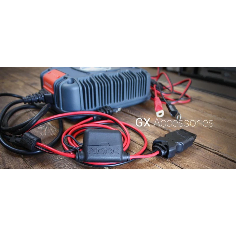 The HD GX Eyelet Connector allows a GX Industrial Charger to quickly connect to any battery. Designed to lay flat for maximum conductivity and a low profile connection. Replace a lost connector or permanently mount one on your vehicle for easy charging. The GXC002 connector is compatible with NOCO GX Industrial Chargers for use with golf carts, scissor lifts, aerial lifts, boom lifts, sweepers, scrubbers, pallet jacks, stand-up forklifts, aisle forklifts, NEVs, UTVs, material handling carts, and more. Optional connector for the NOCO GX Battery Chargers. Permanently mount a battery connection to any battery. Lie-flat design for seamless installations with 13/32-inch hole size. Built-in 50A fuse protection for increased safety. Rugged, watertight connector for extreme environments.