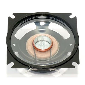 Waterproof 8 cm (3.3") fullrange speaker with a transparent plastic cone and rubber sealing ring.