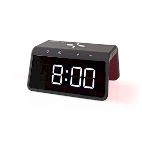 This Nedis wireless charging alarm clock has a variety of features next to the Qi wireless charging function. It has an easy-to-read dimmable backlit display, 2 programmable non-ticking alarms, an additional USB charging output and colour changing night light. The stylish design of the wireless charger alarm clock means it will look great anywhere in your home, on your bed side table, on your desk or in your office.