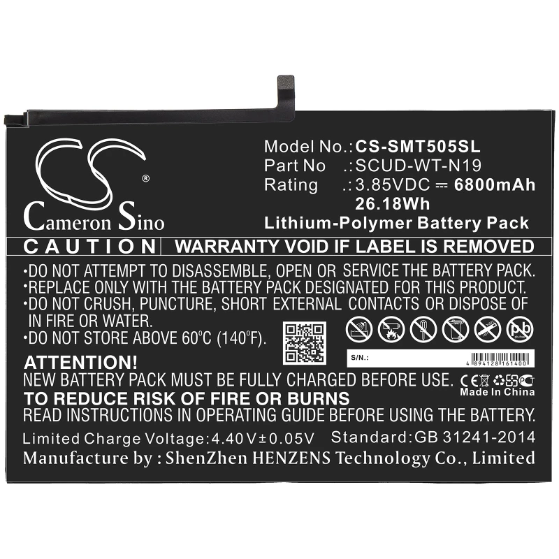 Samsung SCUD-WT-N19, Galaxy Tab A7 10.4 2020, SM-T500, SM-T505 3.85V Li-Polymer 6800mAh-26.18Wh battery