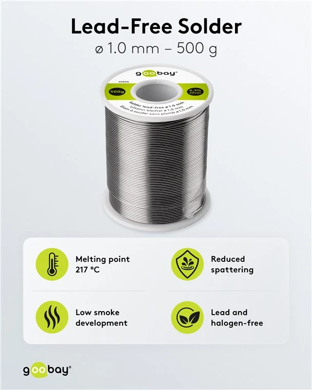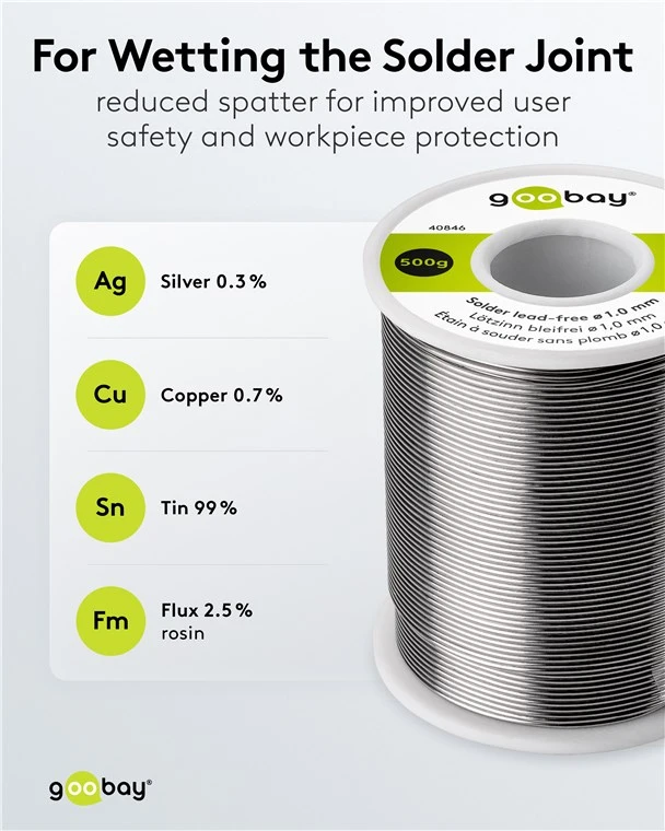 In full flow: With its narrow diameter, the tin is easy to dispense and ideal for precision work, e.g. for soldering electrical components and devices such as printed circuit boards, SMDs, DIPs, cables, televisions, headphones or microphones.