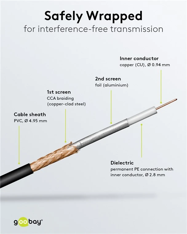 Our antenna cables transmit signals in top quality at high speed, always guaranteeing a stable connection. High-quality inner conductors, robust cable sheathing and precisely fitting plugs distinguish our portfolio of connection cables and plugs. Goobay always provides the perfect products for your network needs. Simply. All. You need!