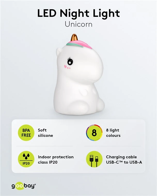 The unicorn is perfect as a sleep aid or baby night light as well as a nightstand or nursery decoration.