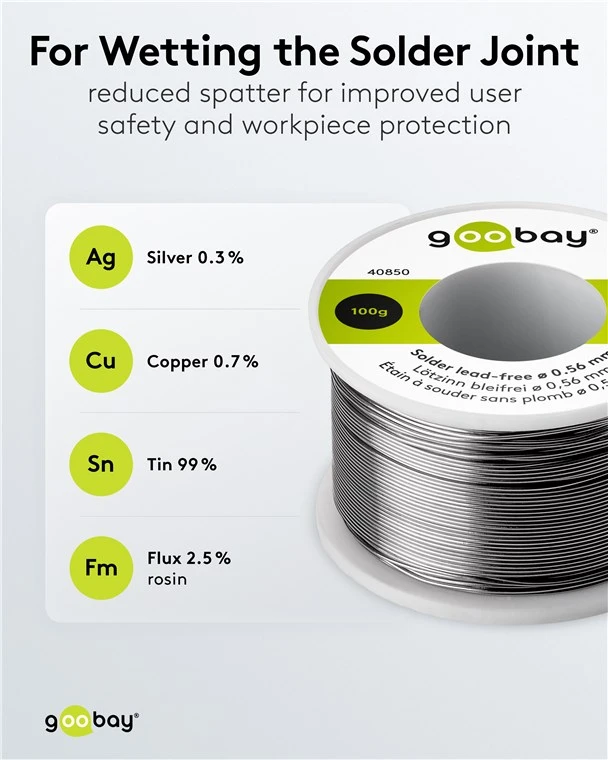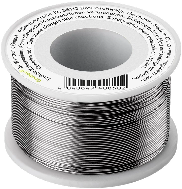 In full flow: With its narrow diameter, the tin is easy to dispense and ideal for precision work, e.g. for soldering electrical components and devices such as printed circuit boards, SMDs, DIPs, cables, televisions, headphones or microphones.