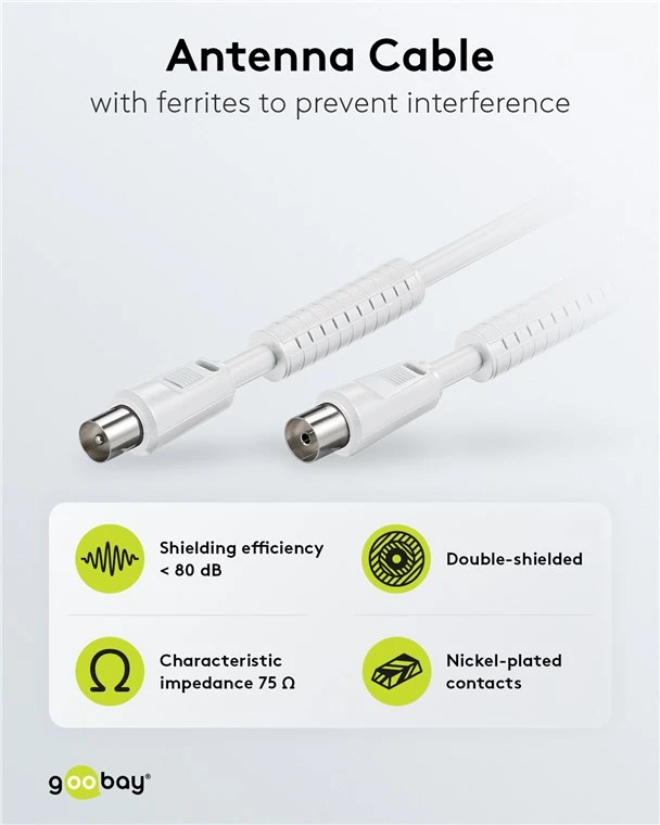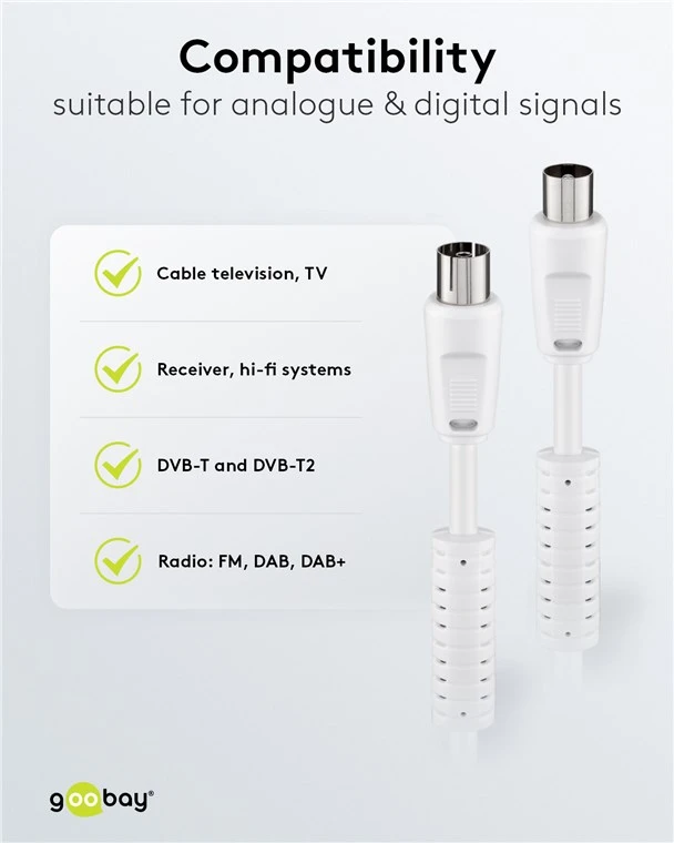 TV aerial cable for connecting devices with a coaxial connection such as televisions, receivers and radios