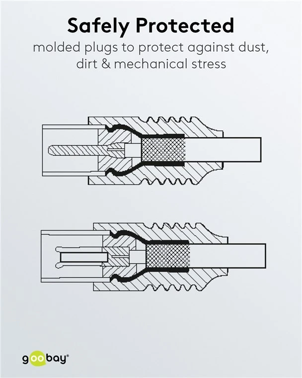 Molded plug on both sides to protect against dust, dirt and mechanical stresses