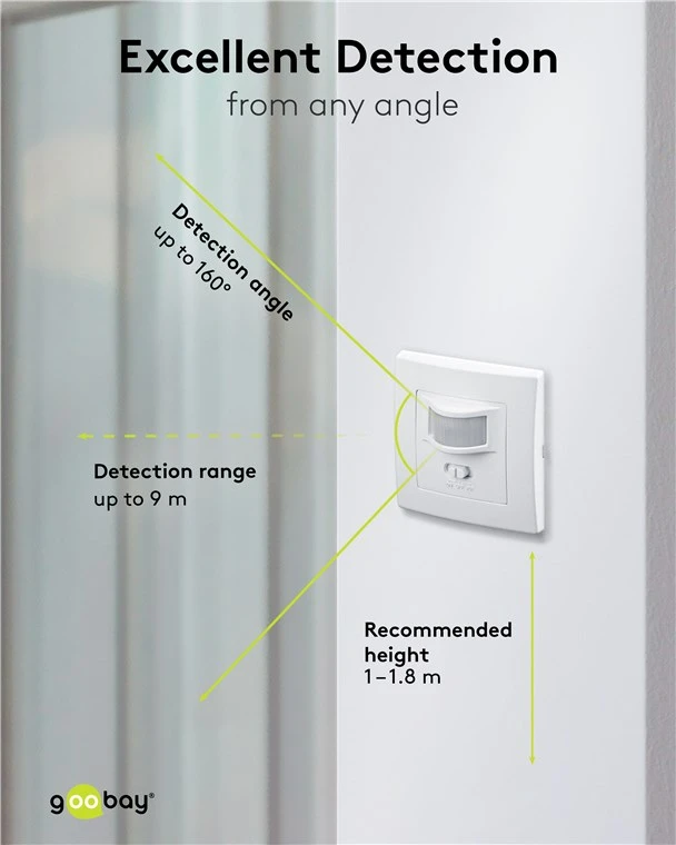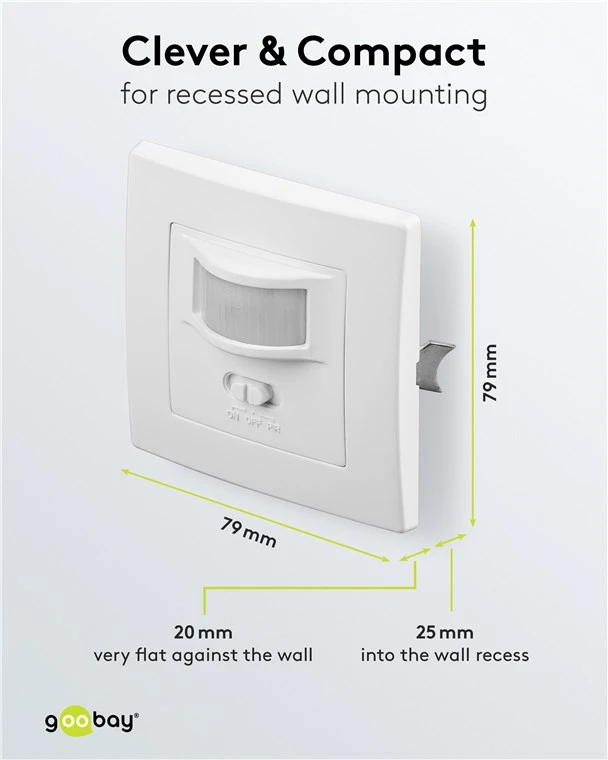 Never left in the dark again: The motion detector from Goobay prevents tripping hazards at dusk and in the dark, giving you a feeling of safety even at night. Perfect for corridors, bathrooms or hallways – the motion detector always reliably activates the connected lighting.