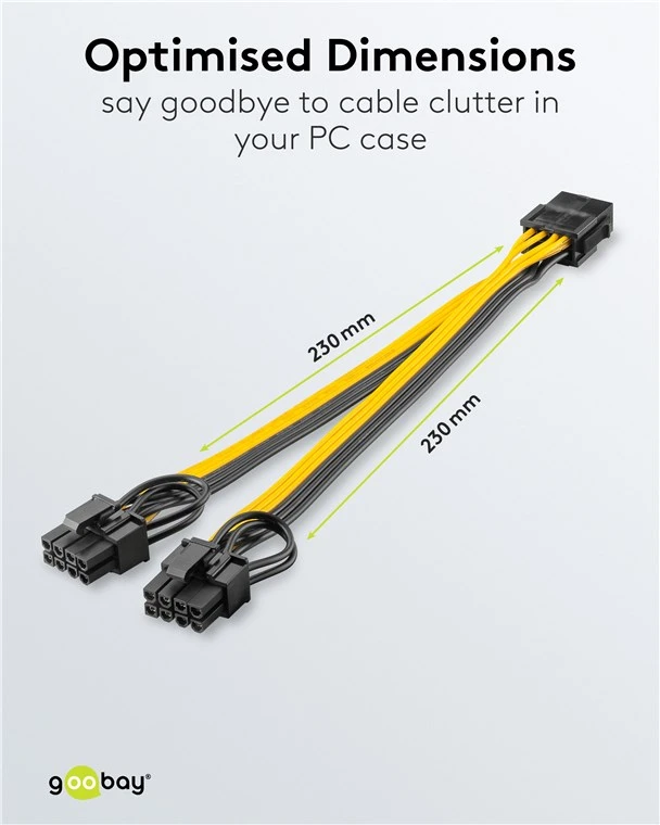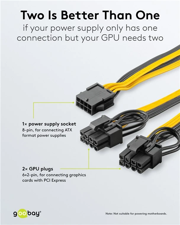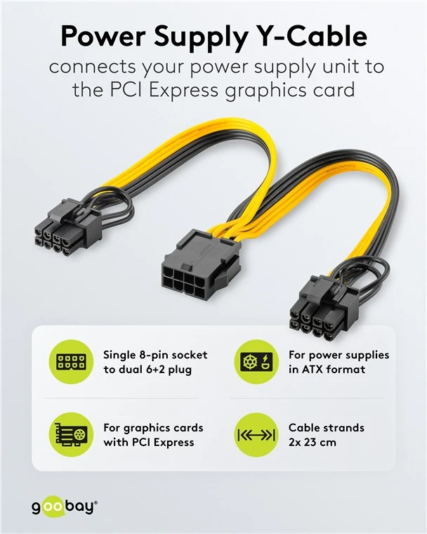 Power cable for connecting modular PC power supplies to dual 6-pin and 8-pin graphics cards