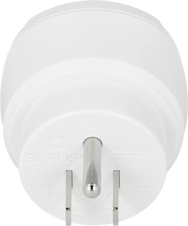 For connecting devices from Europe (2-pole and 3-pole safety socket) in the USA