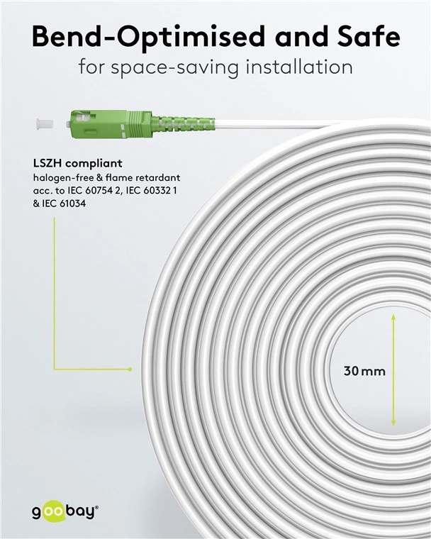Thanks to an optimised bend radius of the fibre optic cable, space-saving installation is possible without increasing attenuation and risking interference.