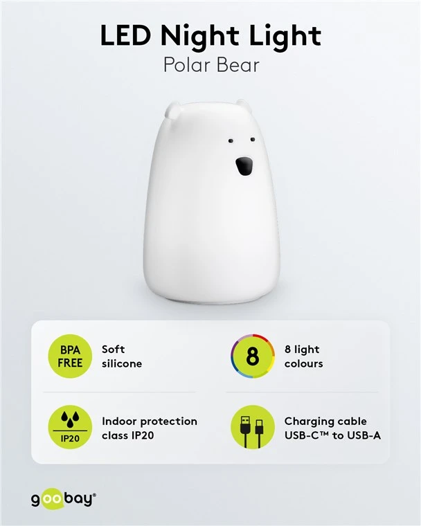The polar bear is perfect as a sleep aid or baby night light as well as a nightstand or nursery decoration.