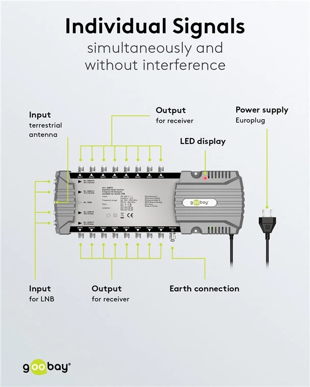 The multiswitch is your easy solution for connecting several devices for TV and radio reception in the same house via just one satellite dish.