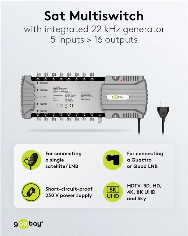 With an integrated 22 kHz generator and suitable for both Quattro LNBs and Quad LNBs