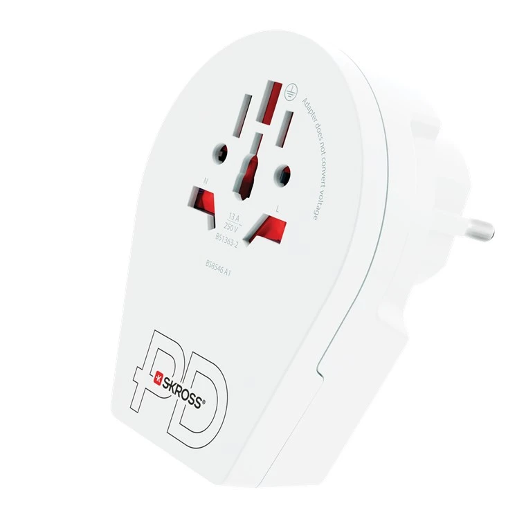 The extremely flat design of the world to European plug adapter saves space in your luggage when travelling