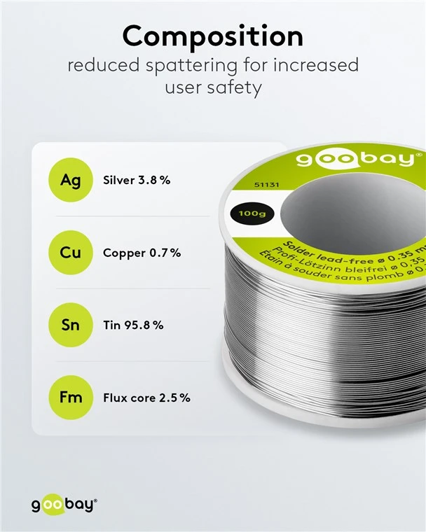 A high percentage of silver and copper (Sn3.8Ag0.7Cu) ensures optimised flow behaviour and improved surface quality in lead-free soldering