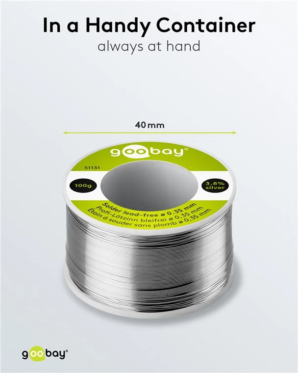 Flux-filled solder wire with a very thin diameter of 0.35 mm for particularly easy dispensing and soldering of delicate components