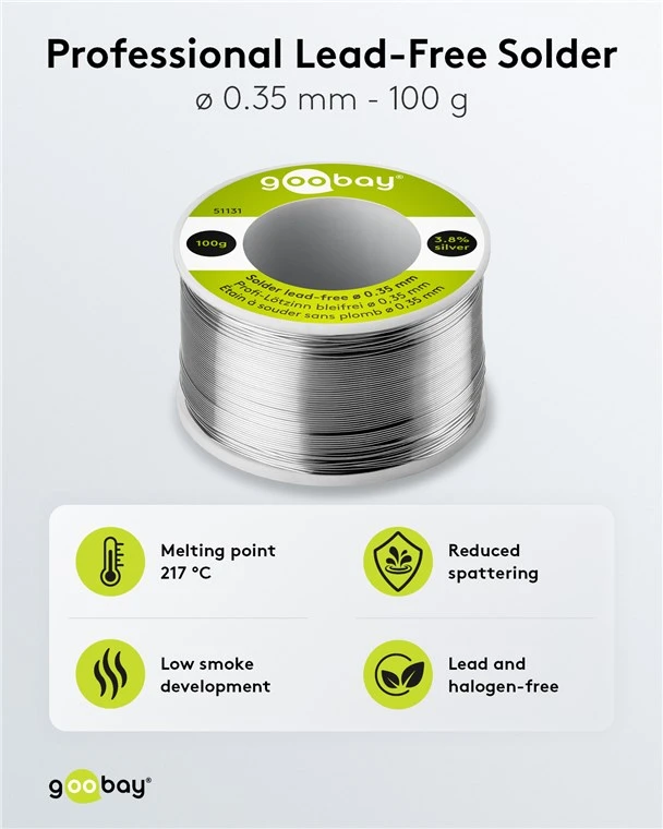 Suitable for soldering work on electrical components and devices such as circuit boards, PCBs, SMDs, DIP, cables, televisions, headphones or microphones.