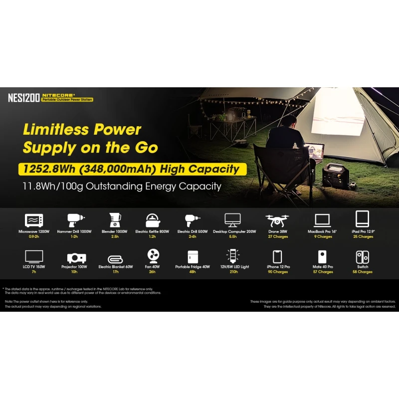 Smart power beyond your imagination! The NITECORE NES1200 is latest portable power station from the engineers at NITECORE offering a high capacity of 1252.8Wh power station with a max AC output of 1200W and ports in the form of a cigarette lighter, AC, USB-A and USB-C. Even with its compact form factor the power station can charge seven devices simultaneously using its sine wave power delivery system, offering a charge similar to that provided by standard AC electricity.
