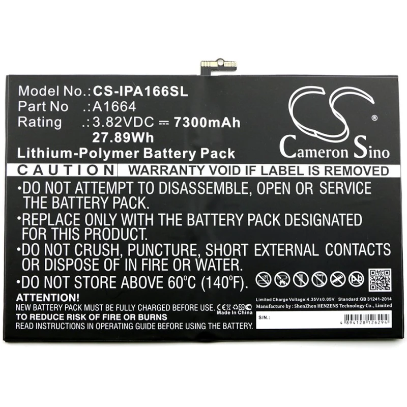 Apple A1664 3.82V 7300mAh Li-Polymer Tablet Battery