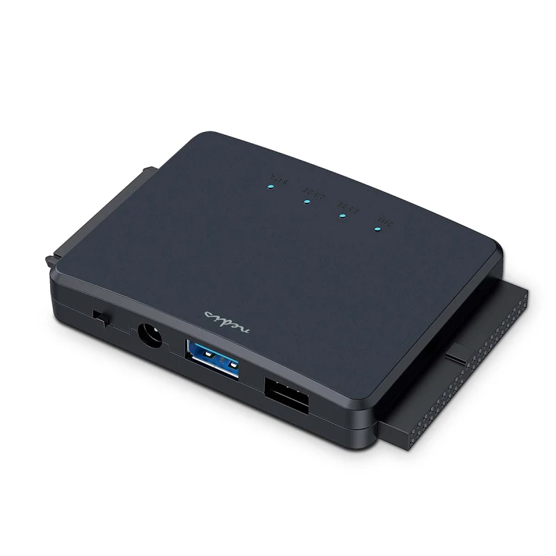 The adapter turns IDE drives, SATA HDDs and SATA SSDs into external USB drives. This means transferring images and files from already removed old hard drives and creating backups has become much more easy. The adapter also allows testing and operating any hard disk and burners via USB 3.2.