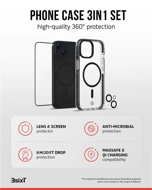 The maximum strength screen protector and the MagSafe-compatible phone case include active impact dispersion for up to 6 metres for ultimate protection