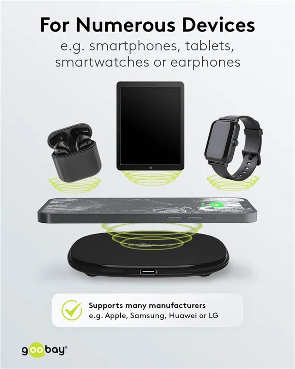 compatible with the following Apple iPhone models: iPhone 14, iPhone 14 Plus, iPhone 14 Pro, iPhone 14 Pro Max, iPhone 13 Pro, iPhone 13 Pro Max, iPhone 13 mini, iPhone 13, iPhone 12 Pro, iPhone 12 Pro Max, iPhone 12 mini, iPhone 12 iPhone 11 Pro, iPhone 11 Pro Max, iPhone 11, iPhone SE (2nd generation), iPhone XS, XS Max iPhone, iPhone XR, iPhone X, iPhone 8, iPhone 8 PlusApple iPad models: 12.9" iPad Pro (4th generation), 12.9" iPad Pro (3rd generation), 12.9" iPad Pro (2nd generation), 12.9" iPad Pro (1st generation ), 11" iPad Pro (2nd generation), 11" iPad Pro (1st generation), 10.5"iPad Pro, iPad Air (4th generation), iPad Air (3rd generation), iPad (8th generation ), iPad (7th generation), iPad mini (5th generation)or Apple AirPods, AirPods Pro, AirPods with wireless charging case (Gen. 2)