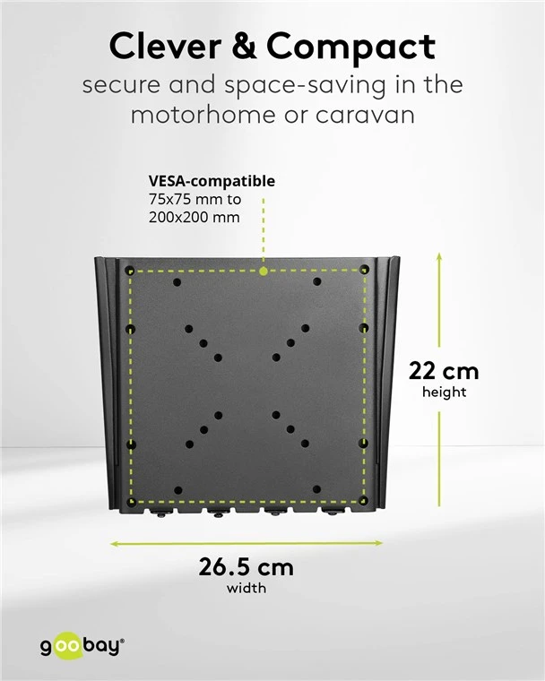 Designed for use in motorhomes or caravans, the wall mount provides a secure hold for the television even while driving – without wobbling or vibration noise