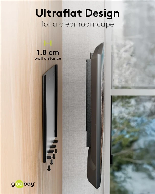 With a wall clearance of just 18 mm, the TV mount can be attached to the wall in a particularly flat and space-saving way