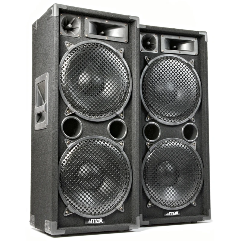 This 3-way bassreflex 2x 12" speakerbox features a driver suitable for bass rumbling frequencies and provide pure power. It offers superb clarity for most music types. With an SPL of greater than 100dB the 1400W box is suitable for almost all good amplifiers. Due to the road ready cabinet finished with carpet the passive speakerbox is suitable for mobile DJs, parties, PA, Karaoke, in discos etc..