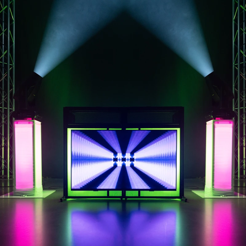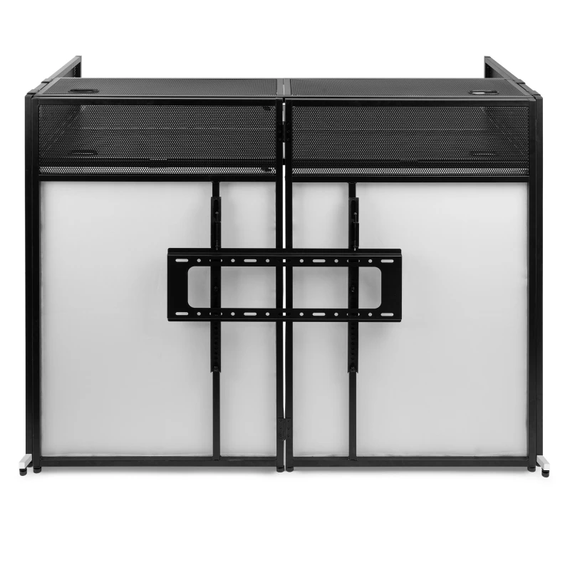The work table is designed to hold up to 25kg evenly distributed and has a ventilated design to keep your equipment cool. The DB6 pro DJ booth system also features a TV bracket that supports a flat panel TV up to 65" and also comes with 4 removable lycra panels in both white and black so you can customize the style of your booth.