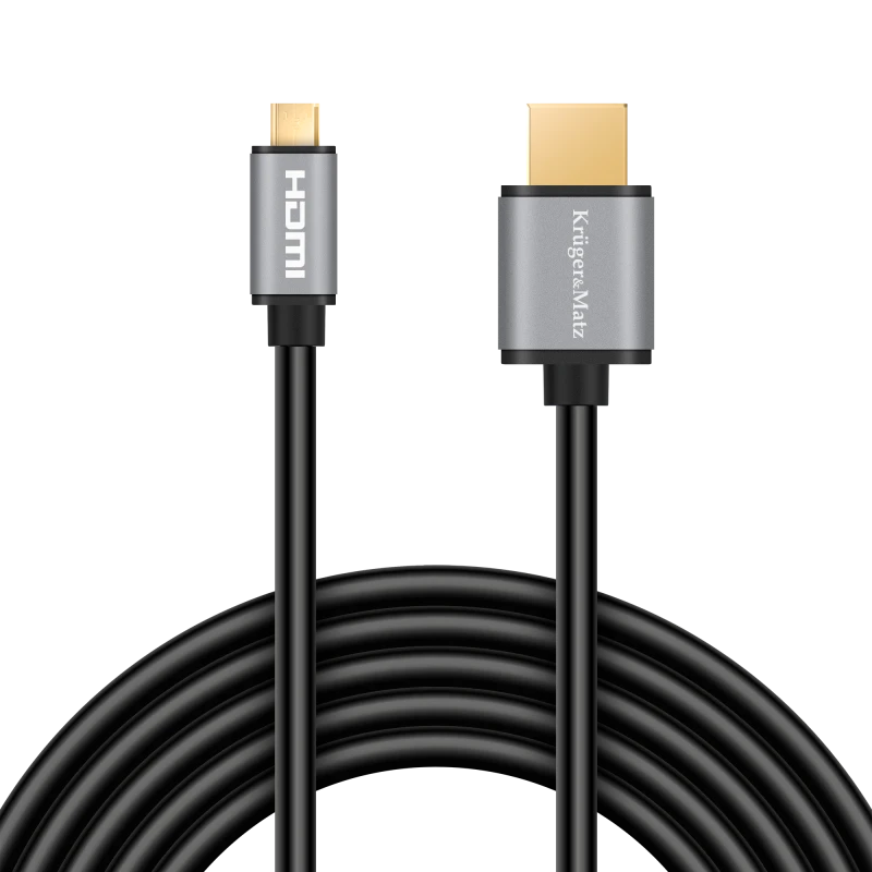 HDMI to micro HDMI Cable 1.8m Kruger&Matz Basic Are you looking for a high-quality cable that will provide excellent connection and unparalleled sound and image quality? The HDMI to micro HDMI 1.8m Kruger&Matz Basic cable is perfect for connecting cameras, action cameras, or other devices with a micro HDMI port to a TV, monitor, or projector, allowing you to display photos and videos in high resolution.