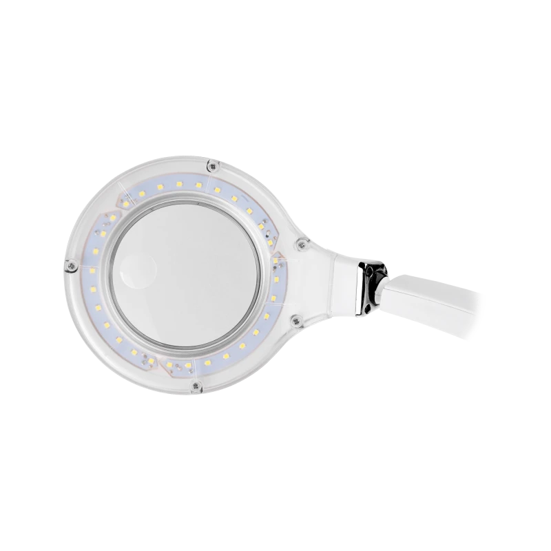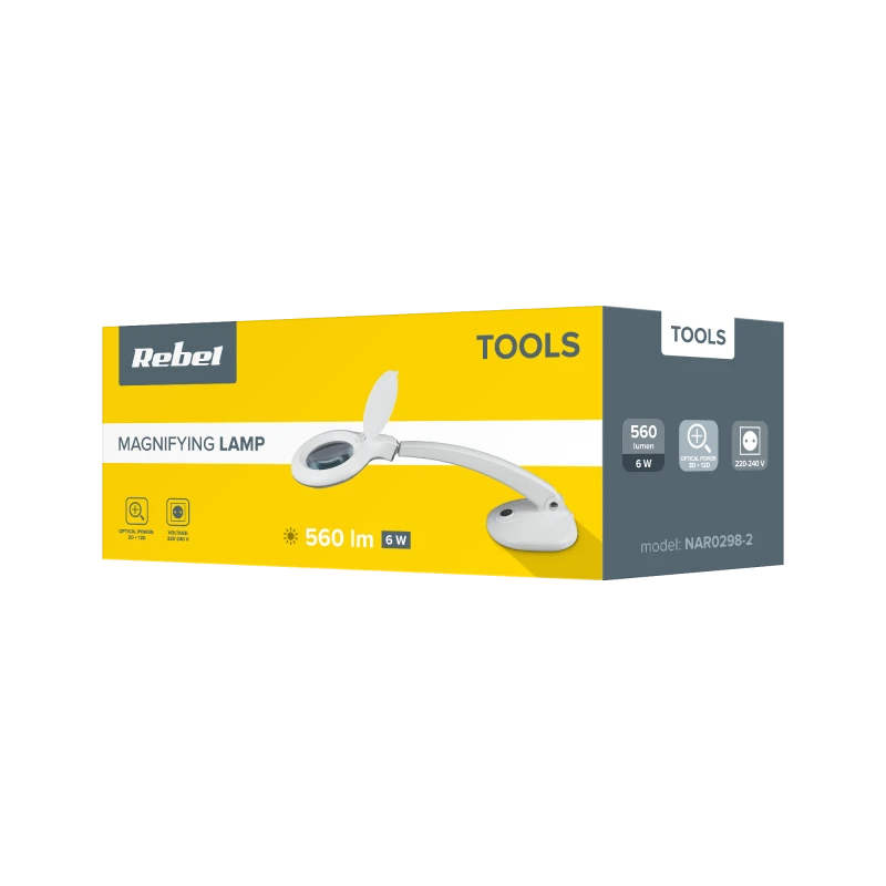 Rebel 6W Desk Magnifying Lamp (30x2835SMD) The Rebel magnifying lamp is an excellent tool for precision work that requires both accurate lighting and magnification. Ideal for the office, workshop, or study, it provides comfort when performing tasks requiring detailed attention. Precise Magnification and Bright Illumination The lamp is equipped with a 4-inch lens, offering 3D magnification and an additional 12D, allowing you to closely examine the smallest details. The light source, consisting of 30 LEDs of type 2835 SMD, generates a bright luminous flux of 450 lumens. The 6500 K color temperature provides cool, daylight, ideal for long-term work without tiring the eyes.