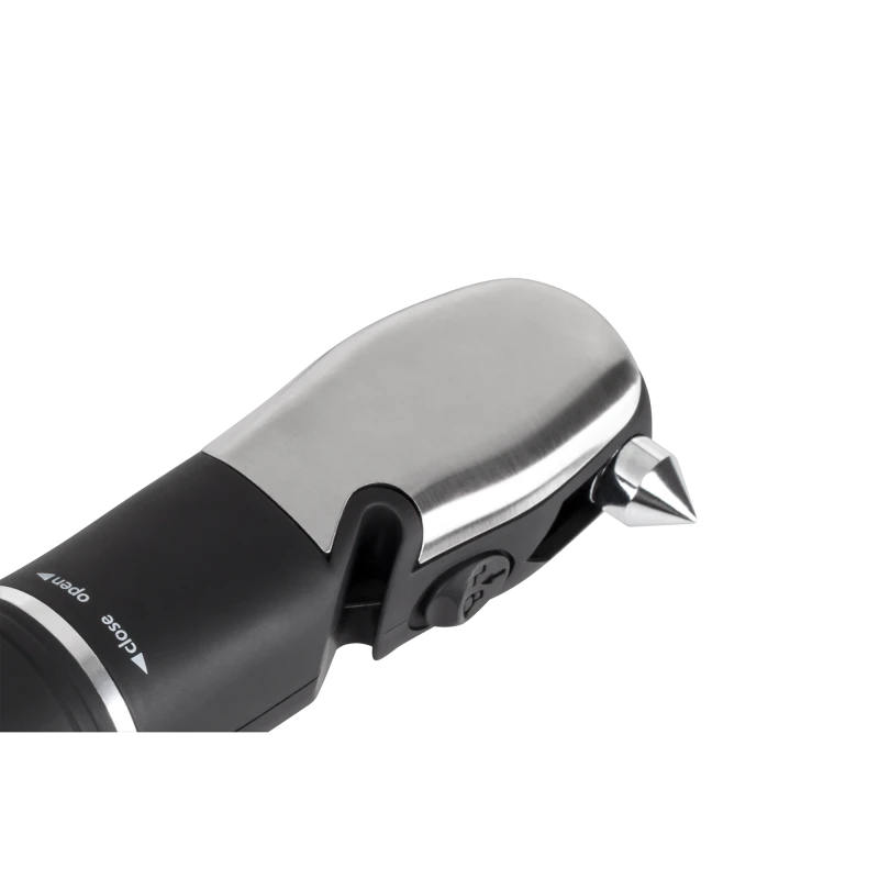 Safety Tools The flashlight is equipped with a seatbelt cutter and a safety hammer, which can prove invaluable in emergency situations such as car accidents. Thanks to these features, the user has the necessary tools at hand to react quickly in emergencies.