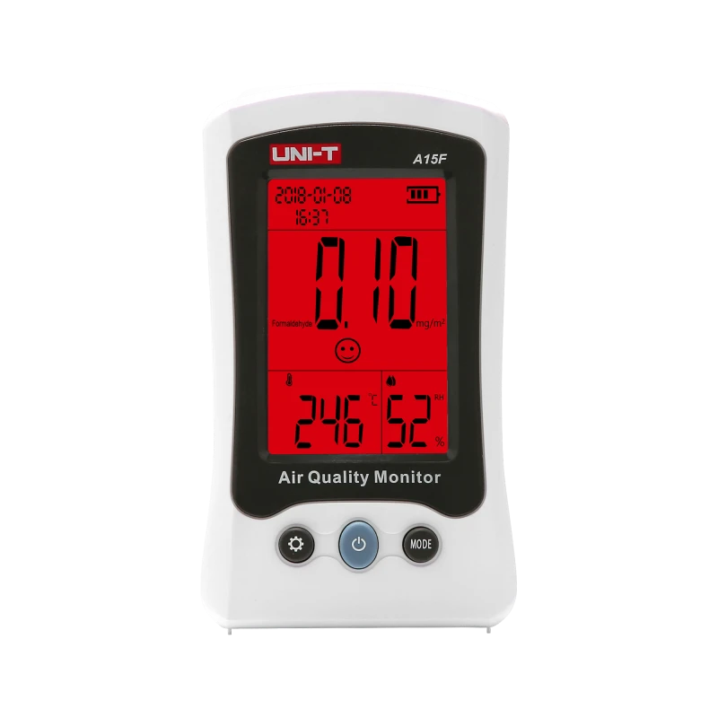 Uni-T A15F Air Quality Meter The Uni-T A15F air quality meter is an advanced device designed for monitoring formaldehyde levels and environmental conditions such as temperature and humidity. Thanks to its precise measurements and additional functions, it is an ideal tool for assessing indoor air quality, especially where maintaining a healthy and safe environment is essential.