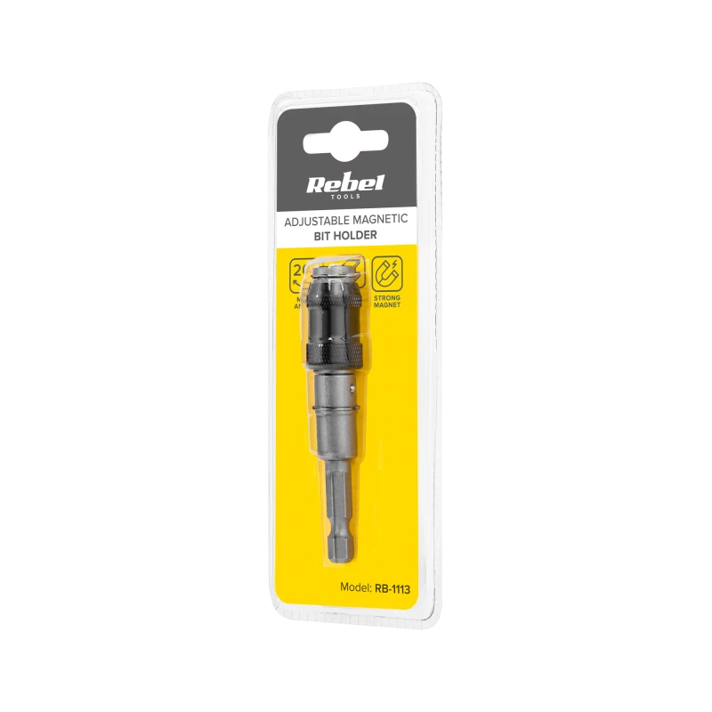 Magnetic Bit Extension with Adjustment The magnetic bit extension with adjustment is the perfect solution for anyone who values precision and convenience while working. Thanks to the maximum adjustment angle of up to 20 degrees, you can easily adapt the tool to hard-to-reach places, increasing your efficiency and work comfort.