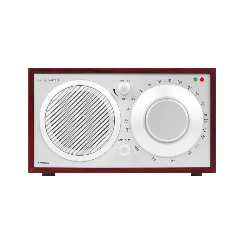 Kruger&Matz Home Radio model KM0823. The Kruger&Matz KM 823 radio is an elegant device that allows you to receive both AM and FM waves. Thanks to this, you can enjoy your favorite stations no matter where you are. Analog station tuning with a precise knob allows for easy tuning to the desired frequency, ensuring clear and crisp sound for your broadcasts.