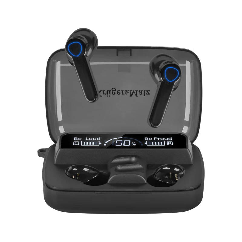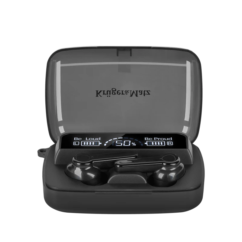 Playing for time The Kruger&Matz M19 in-ear headphones are equipped with 30 mAh batteries that will provide up to 3 hours in the company of your favorite sounds. Case with power bank The case you receive with the M19 wireless headphones not only allows you to charge and safely store them. Thanks to the built-in 300 mAh battery, it becomes a power bank that will allow you to charge other devices.