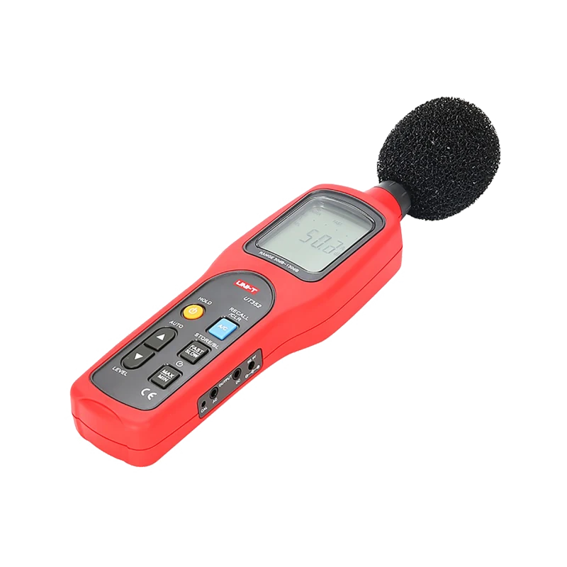 Uni-T UT352 Sound Level Meter The Uni-T UT352 is a precision sound level meter designed for measuring noise in a wide range of applications, such as acoustics, health protection, and occupational safety. Thanks to its high sensitivity and accuracy, the UT352 is an ideal tool for monitoring noise levels in various environments. Precise Sound Level Measurement The UT352 enables sound level measurement in the range of 30 to 130 dB with an accuracy of ±1.5 dB and a resolution of 0.1 dB, ensuring reliable and accurate results. The device supports two sampling frequency modes: FAST (8/s) for rapid changes in sound level and SLOW (1/s) for more stable readings, allowing for flexible adjustment of the measurement to environmental conditions. The frequency response ranges from 31.5 Hz to 8 kHz, and the user has the option to select band switching between A and C characteristics.