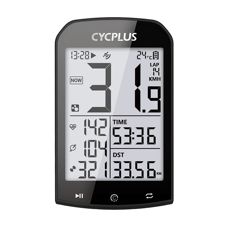 The Cycplus M1 bicycle computer provides many useful pieces of information about your ride. You can comfortably check data such as temperature, time, distance, duration of the trip, riding speed, terrain incline, and much more. There is also the possibility of synchronizing data with an app via Bluetooth.