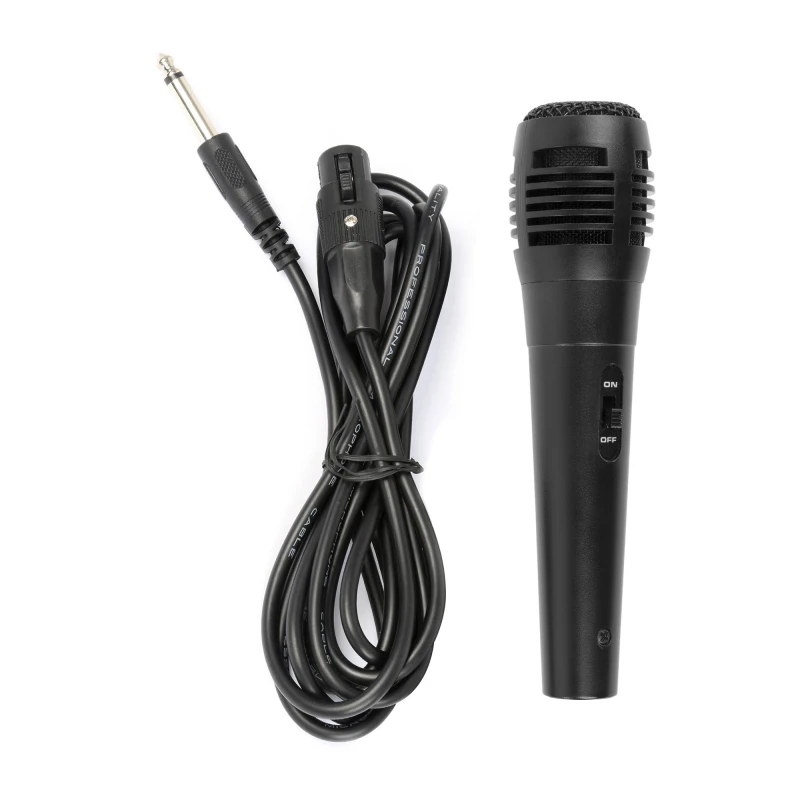 Included accessories: Handheld microphone (wireless), Remote control (wireless), Power cable, Speaker cable