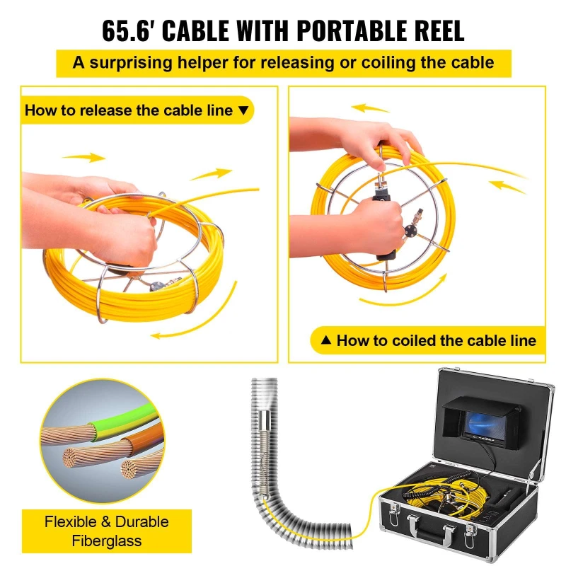 - Equipment: cable with fiberglass 20 m (with reel), the monitor, the DVR with remote control, microphone, charger, Li-ION battery, manual, carrying case aluminum