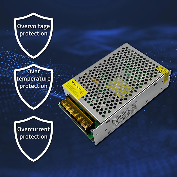 With a maximum power of 100W, power supply provides stable and safe power supply, Protecting your LED strips from overloading. Additionally, Built-in overload, overvoltage and short-circuit protections ensure long-lasting and safe operation. Degree of protection IP20 protects against dust and moisture, making this power supply ideal for indoor applications.