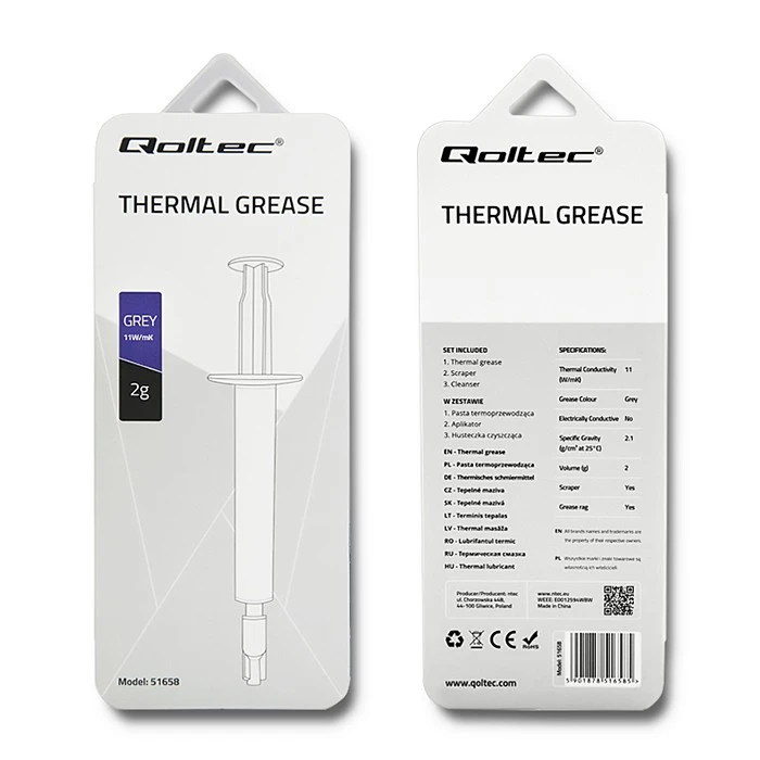 Dreaming of a reliably operating computer? That's exactly what Qoltec thermal pastes can provide! We offer a wide range of products that guarantee not only reliability but also excellent improvement in cooling system efficiency. Our pastes feature varying densities and thermal performance, giving you the opportunity to choose the perfect solution tailored to your needs. With Qoltec thermal pastes, your computer will run like clockwork, ensuring unparalleled performance and stability!