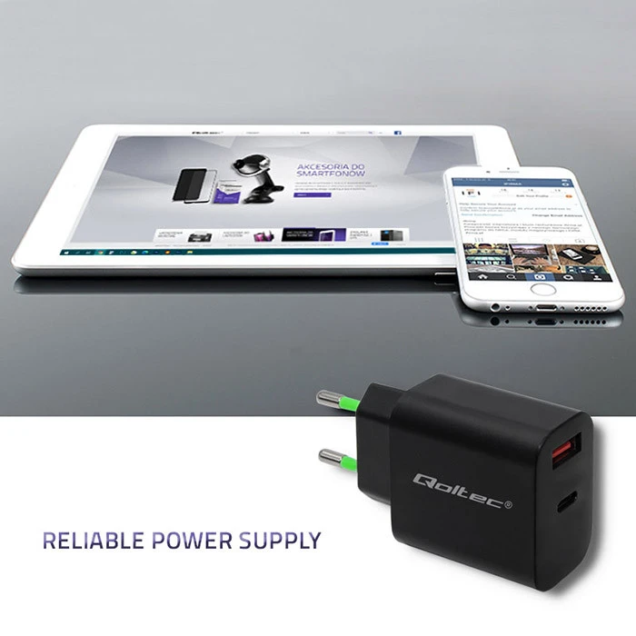 The Qoltec brand charger uses advanced POWER DELIVERY technology that adapts to the connected equipment, precisely setting the maximum voltage and current required. POWER DELIVERY technology uses the USB-C connector .